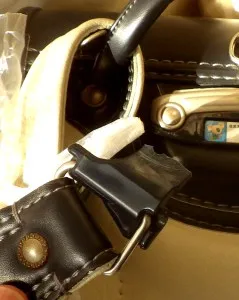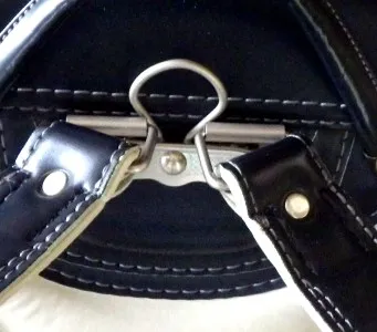 ランドセルを修理していただいた時の写真を紹介します。左が修理前、右が修理後です。ランドセルの背負いひも?の付け根部分のプラスチック部品が折れてしまいました。ここは壊れやすいそうで、毎年修理依頼が舞い込むそうです。このため、リフォームショップわたなべでは、右側のような付け替え用の金具が常備されていて、すぐに修理してもらえます。